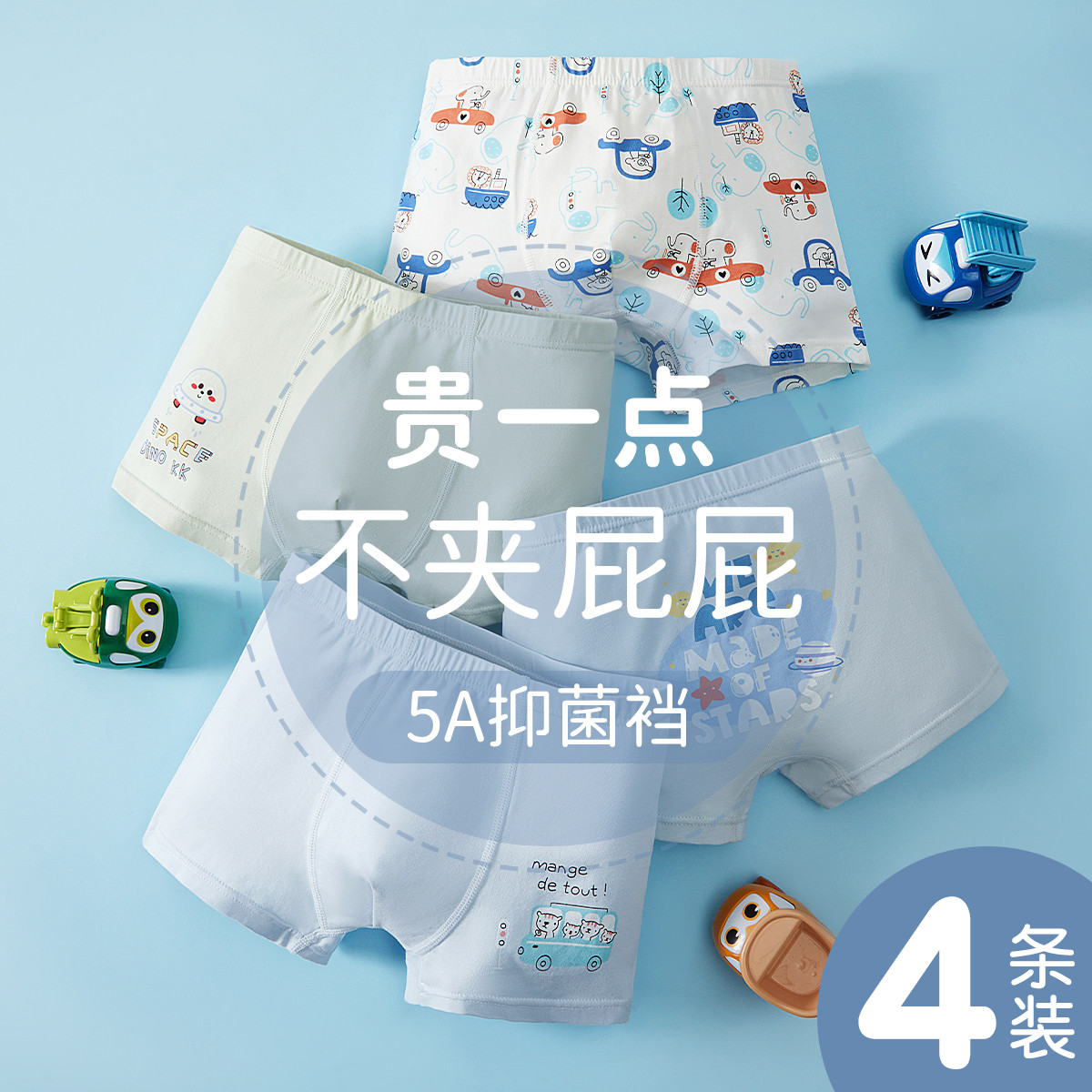 【5A级抑菌】4条儿童内裤男童内裤平角100纯棉里裆中大男童 499787