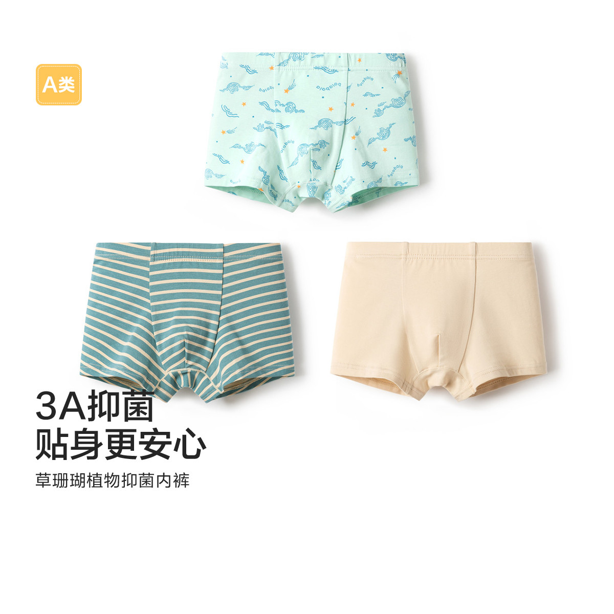 抑菌儿童内裤成长期男童平角裤棉a类四角短裤不夹PP透气三条装 131397