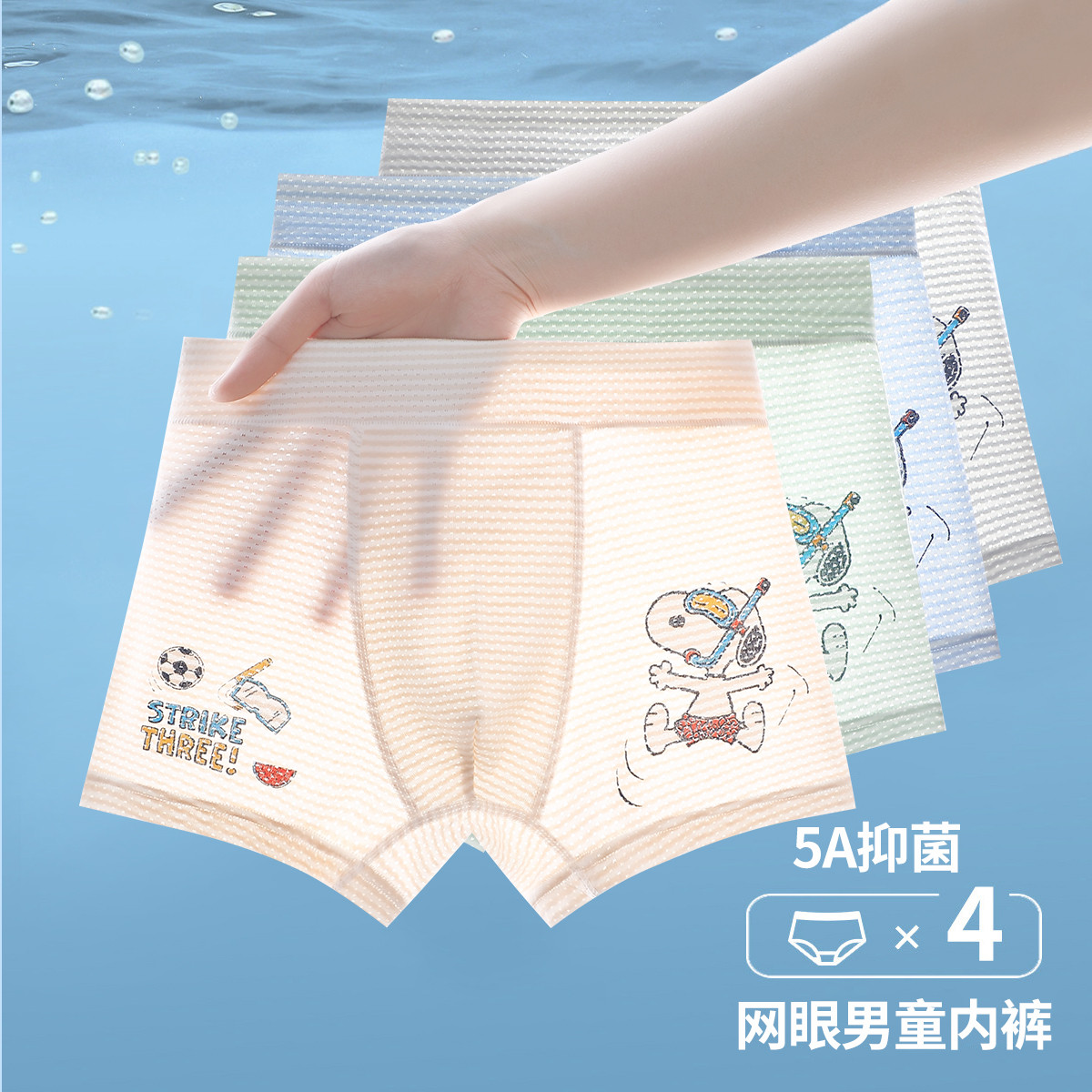 【5A抑菌网孔四条装】夏季轻薄透气儿童平角裤四角裤中大童内裤 467352