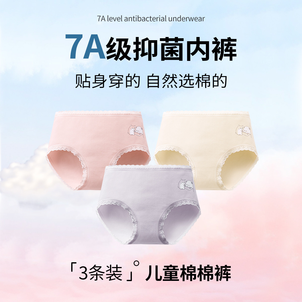【校服神器】3条装7A抑菌女童内裤舒适柔棉儿童三角内裤中大童 535435