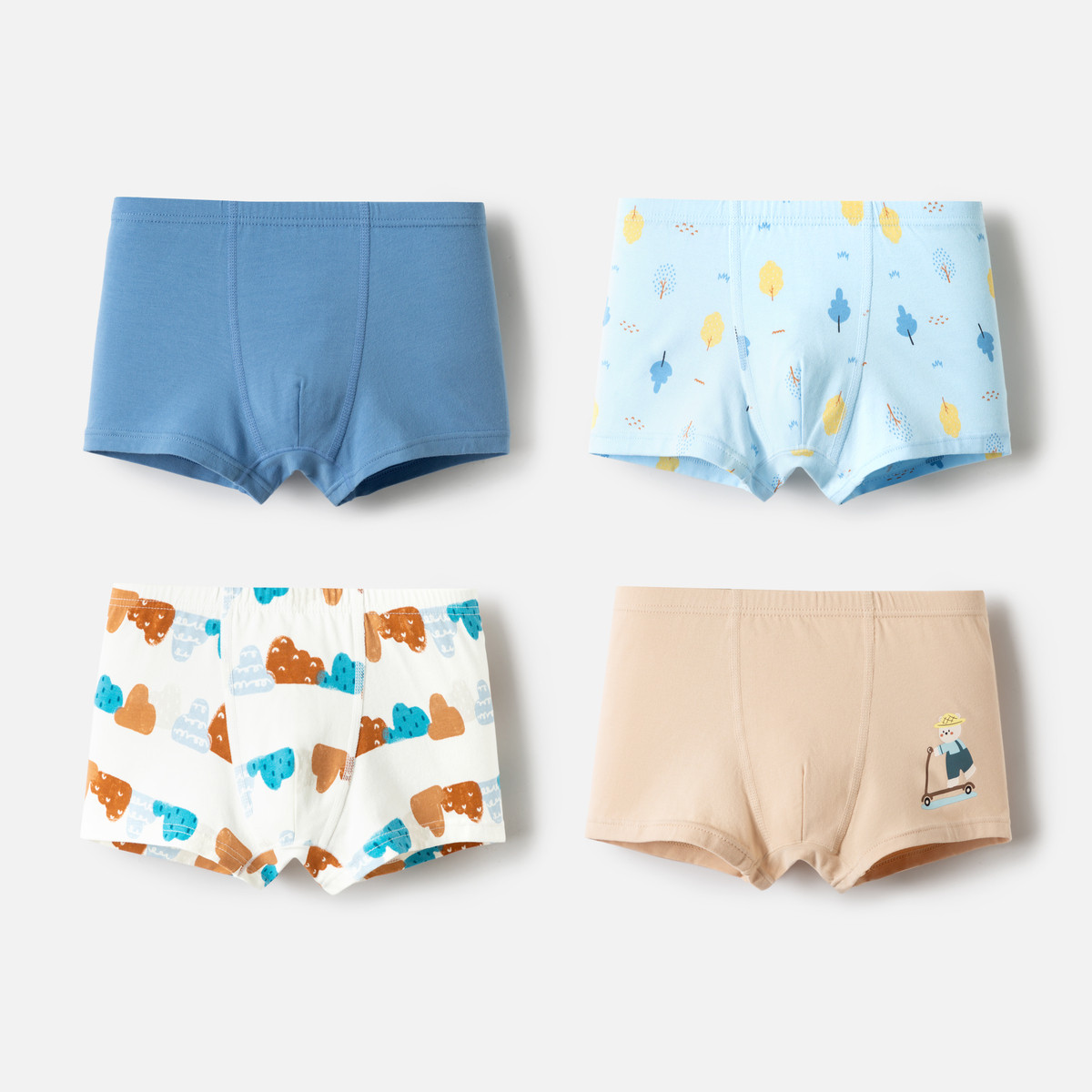 【吸汗透气四条装】儿童平角内裤男童夏季棉质短裤中大童四角裤 110552