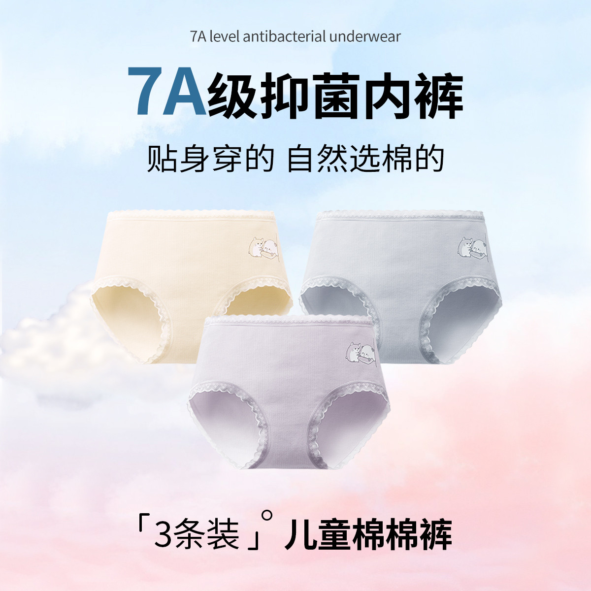 【校服神器】3条装7A抑菌女童内裤舒适柔棉儿童三角内裤中大童 711563