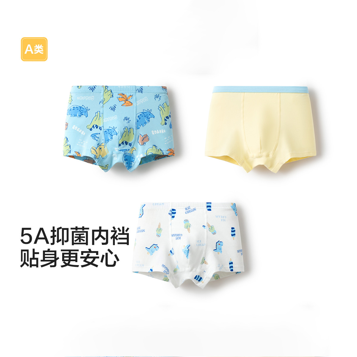 抑菌裆底男童内裤棉a类儿童平角裤成长期小童春秋四角短裤三条装 169029