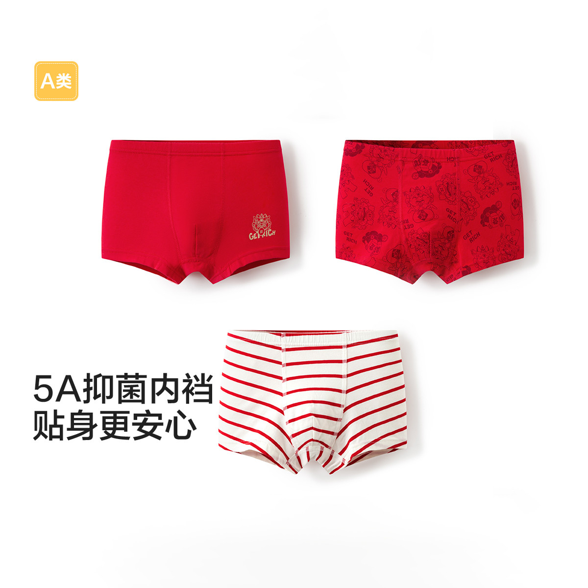 男童内裤平角裤棉成长期本命年红色儿童四角短裤春秋三条装透气 468869