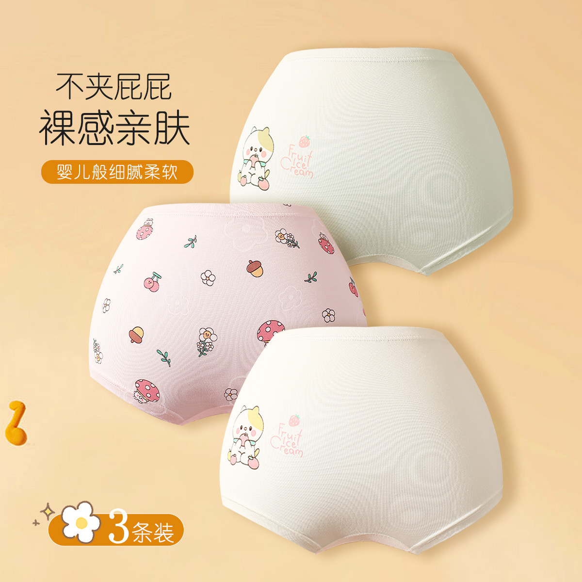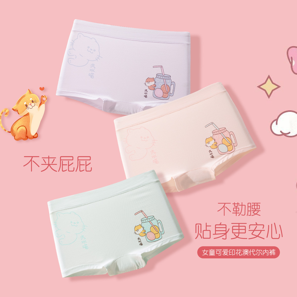 【柔软面料】不勒小肚子3条装可爱印花儿童内裤女童四角裤发育期 038558
