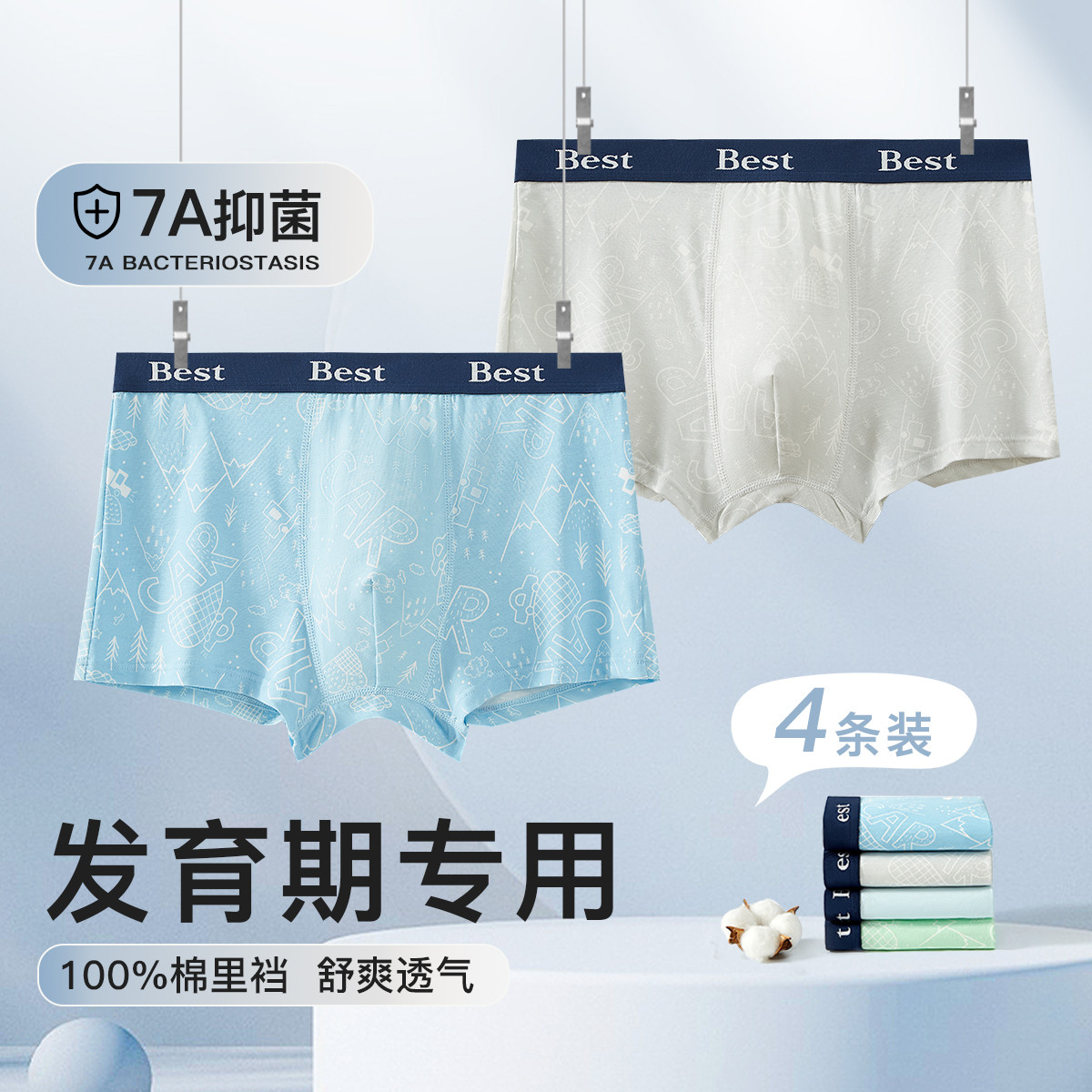 青少年内裤男初中大童学生发育期12岁以上儿童内裤纯棉裆平角裤 833675