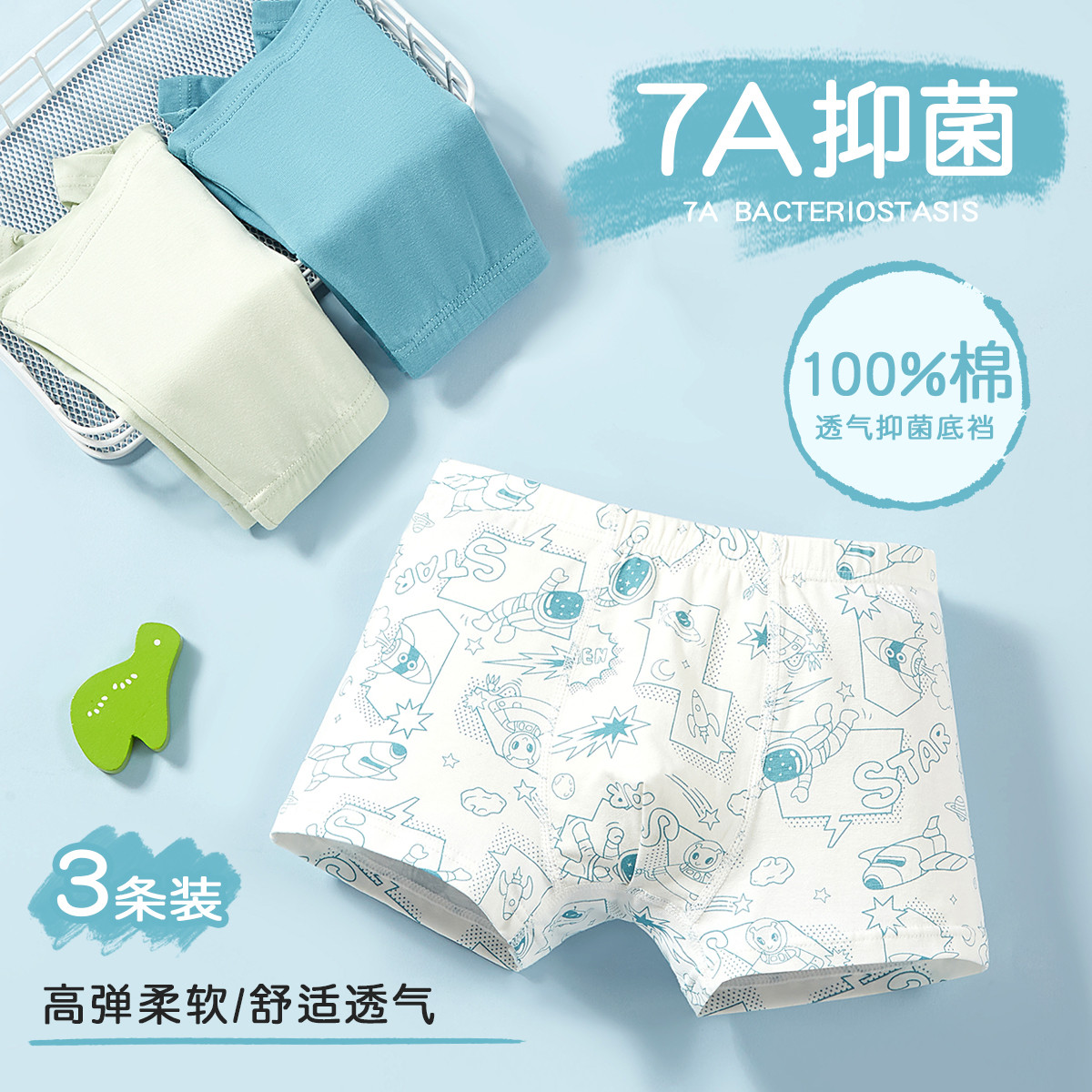 3条装【7A抑菌100%纯棉裆】儿童内裤男童平角内裤短裤中大童 794507