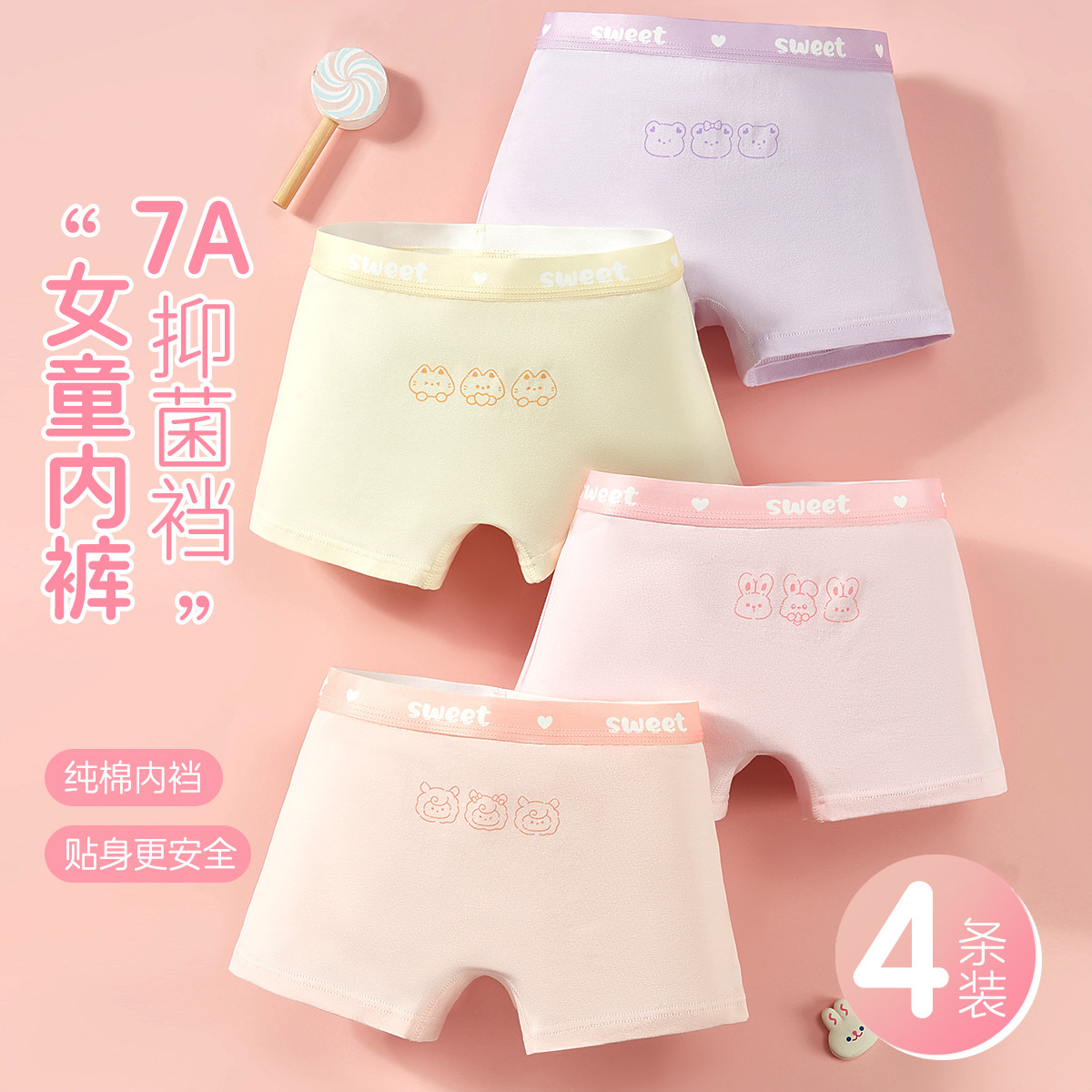 【纯棉底裆7A抑菌】4条装女童内裤平角印花内裤儿童女中大童 114635