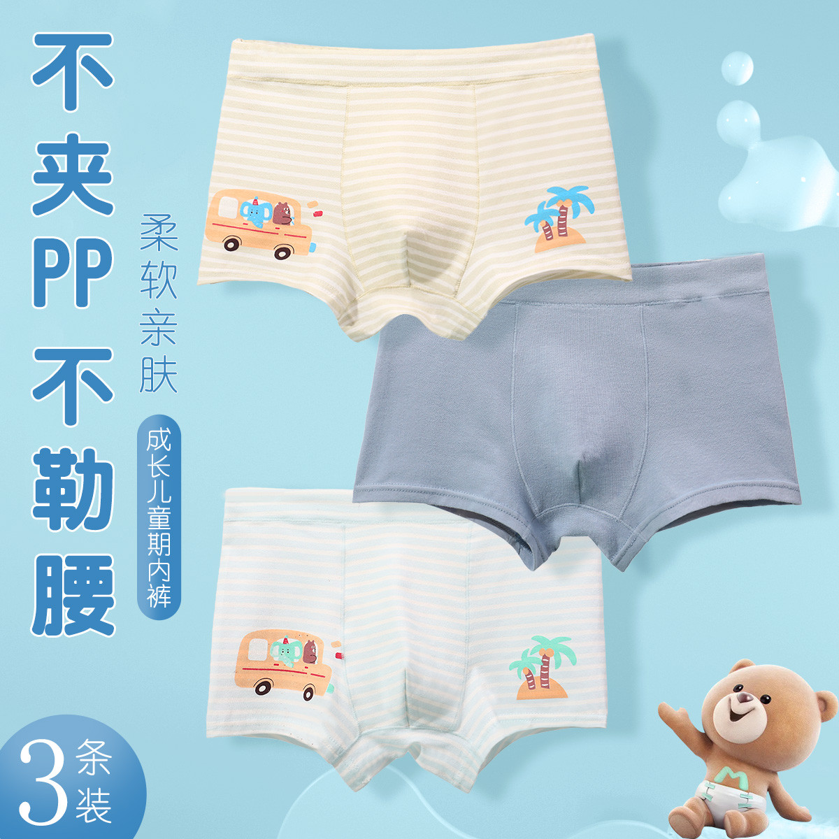 抑菌儿童内裤成长期男童平角裤棉a类四角短裤不夹PP透气三条装 131397