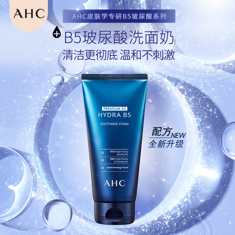 AHC/爱和纯 蓝啵啵B5洗面奶 180ml 玻尿酸清洁泡沫洁面 修护温和保湿