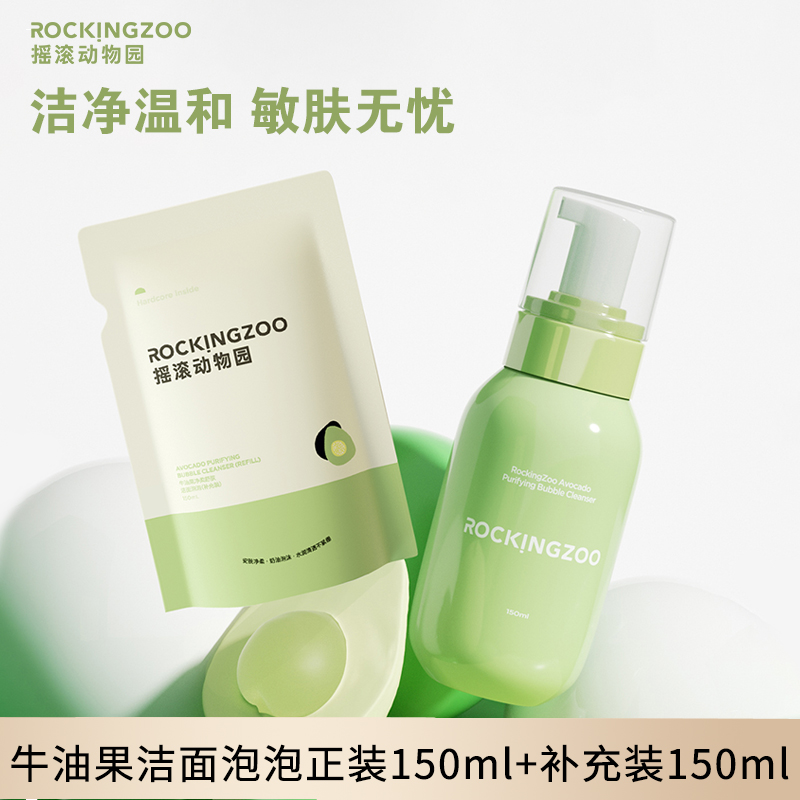 摇滚动物园 牛油果洁面慕斯正装+替换装 150ml+150ml