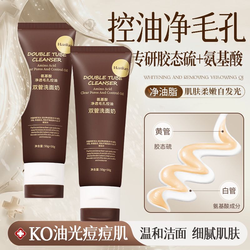 Hankey/韩纪 氨基酸净透毛孔控油双管洗面奶50g+50g
