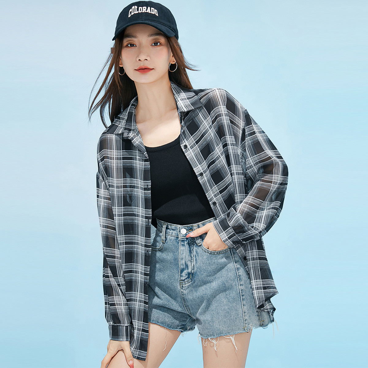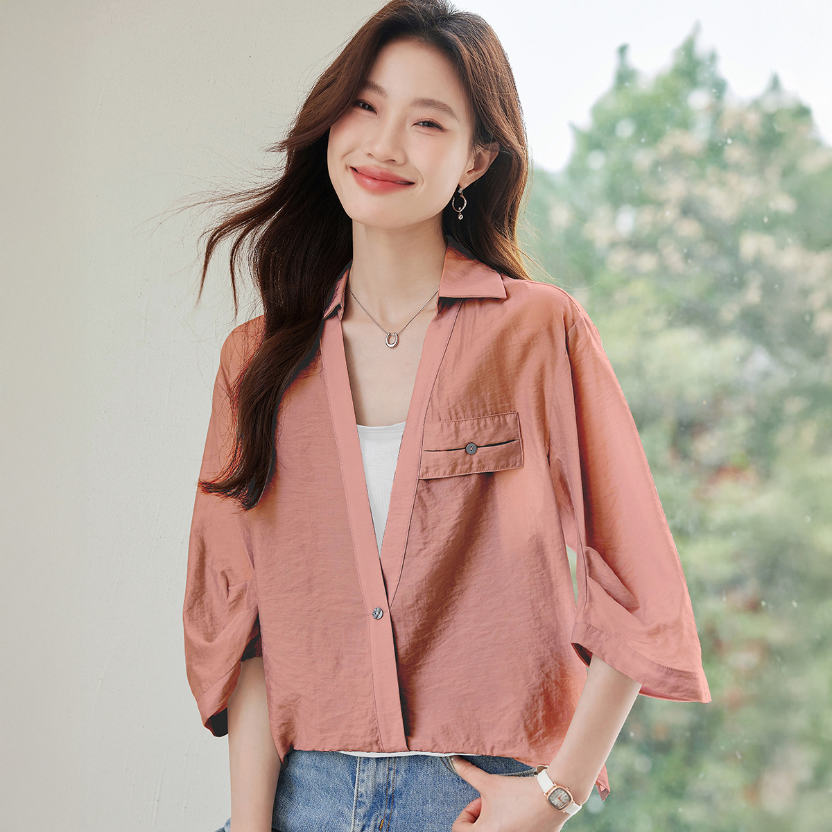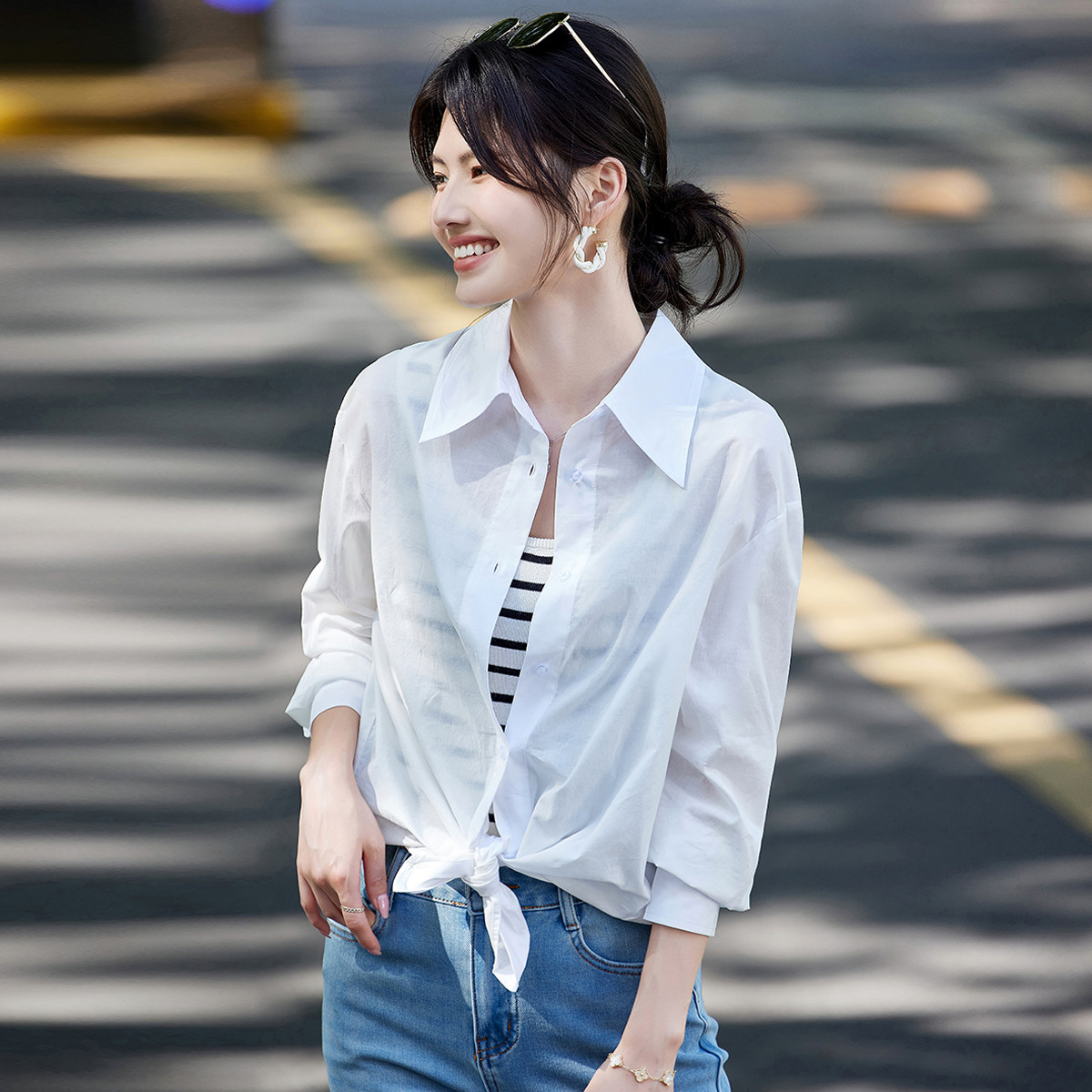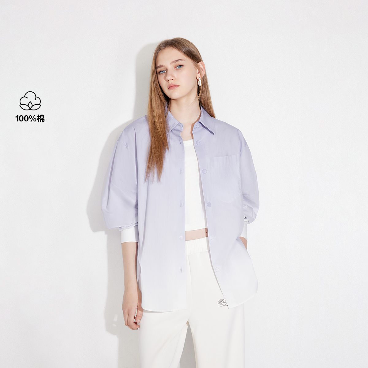【100%棉】经典系列纯棉衬衫女长袖2025夏季时尚遮阳衬衫 922335