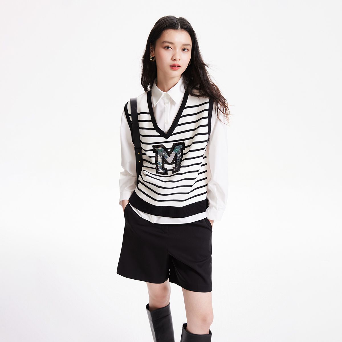 【灵感衣橱】背心内搭假两件衬衫女设计感2025夏季七分袖衬衣 140383