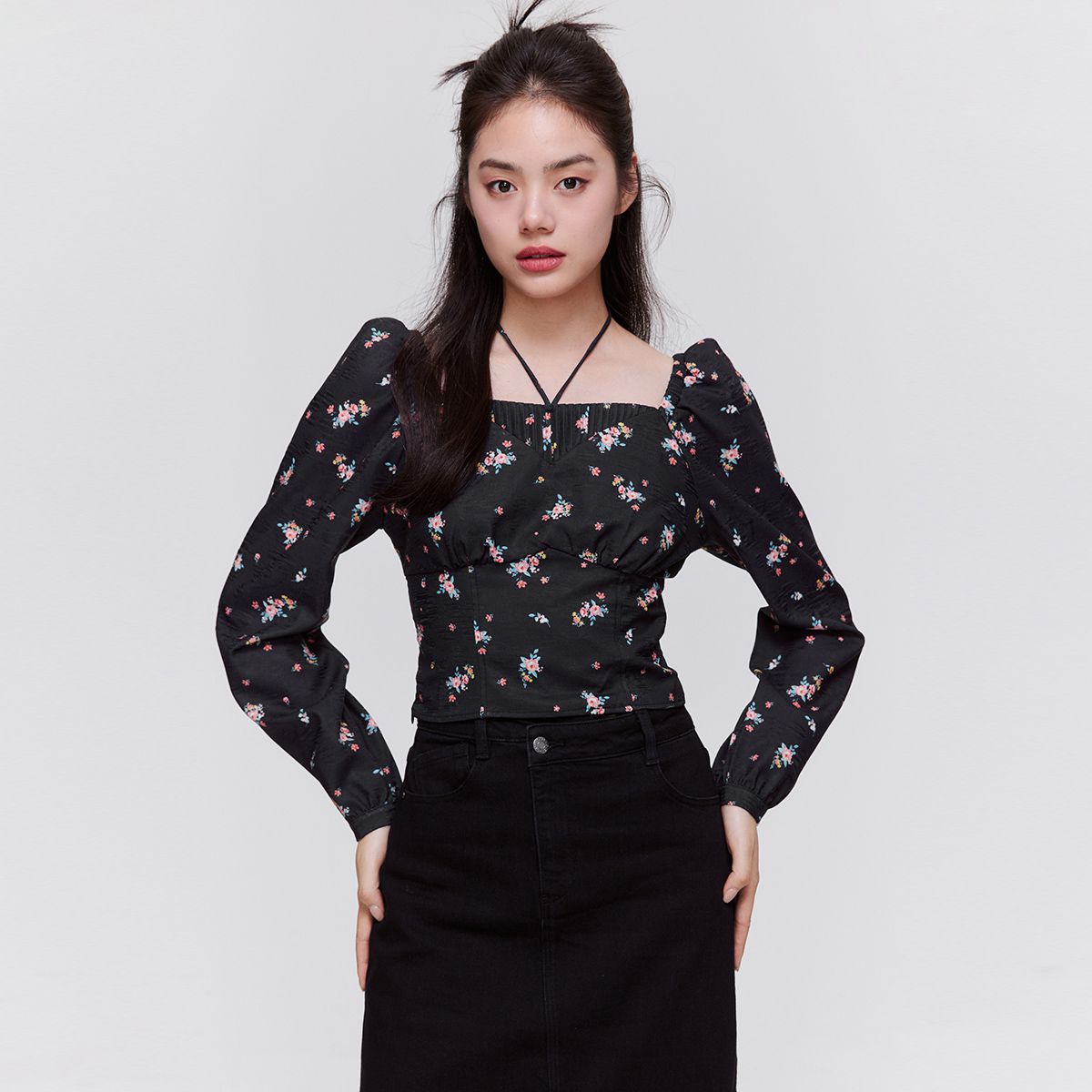 【洋气休闲】时尚通勤少女修身泡泡袖短款雪纺衫女 254106