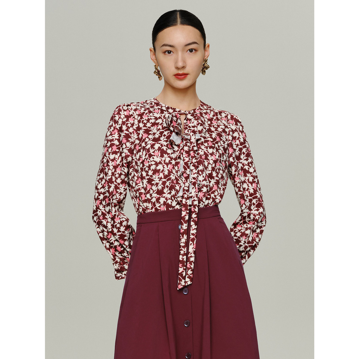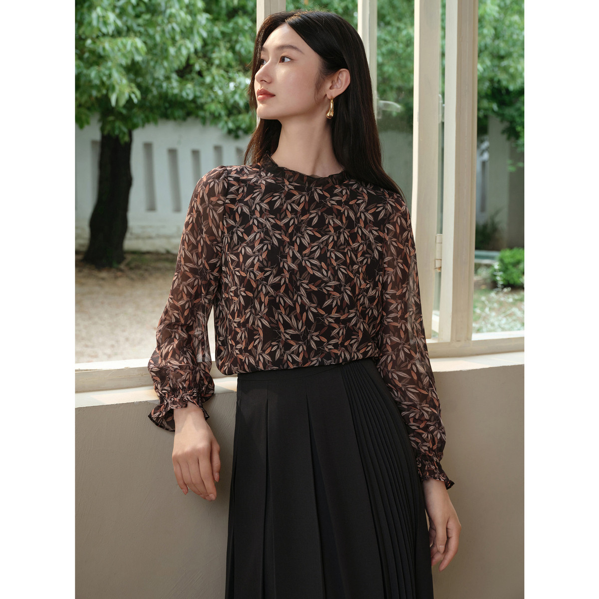【草目系列】旗下安娜蔻系列优雅轻熟碎花雪纺长袖上衣女 406924