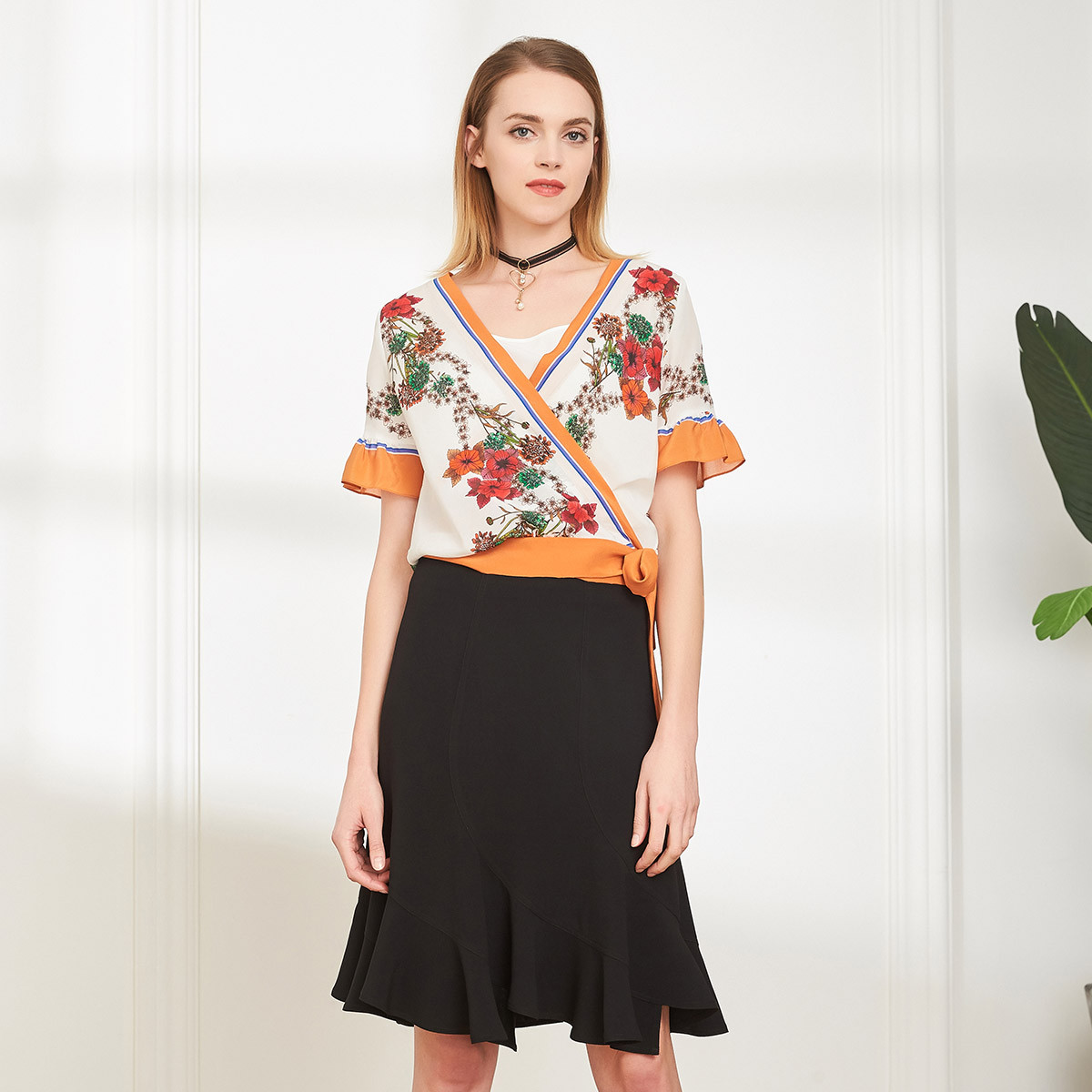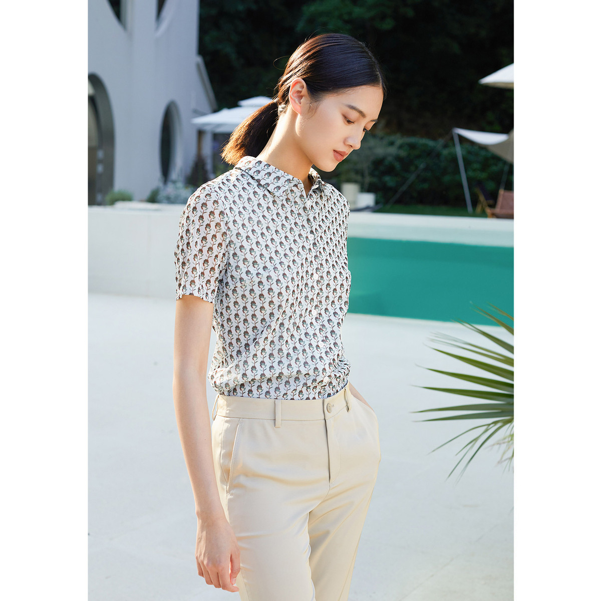 桑蚕丝方巾花短上衣华丽印花夏季休闲款含内搭两件套女式衬衫 196447