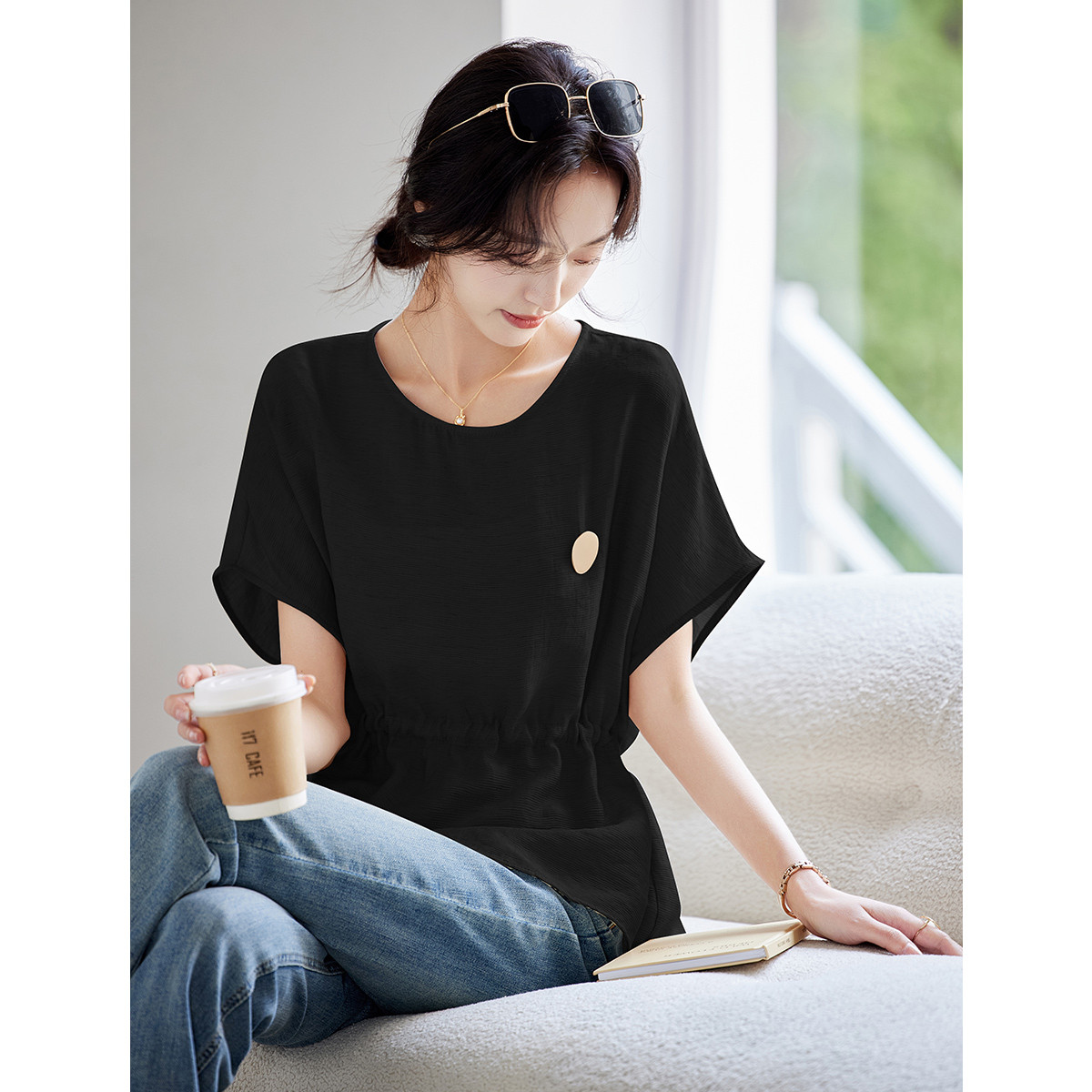 透气休闲衬衫2025夏季新款金属装饰抽绳收腰显瘦薄款短袖上衣 571544