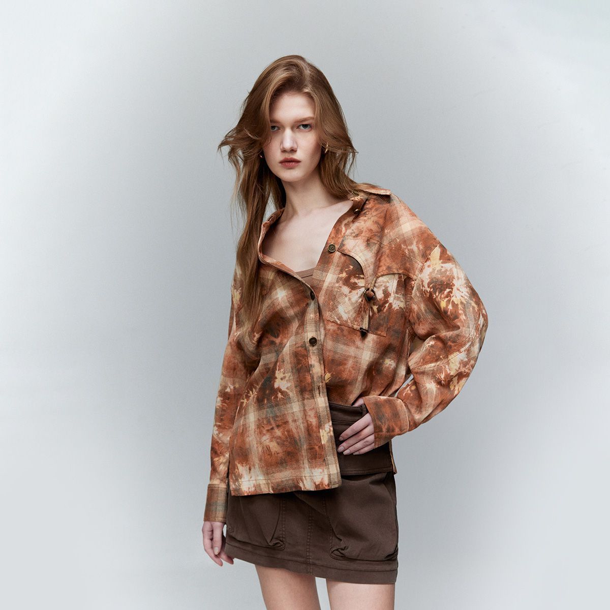【渐变设计】夏季男友风晕染宽松纯棉长袖衬衫女 993754