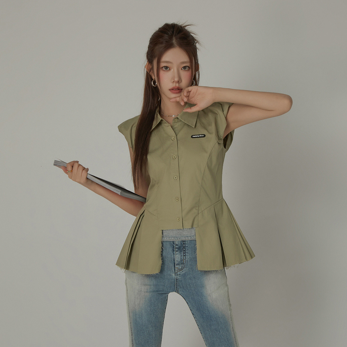 毛边无袖衬衫女夏设计感个性小众减龄褶皱辣妹上衣 652435