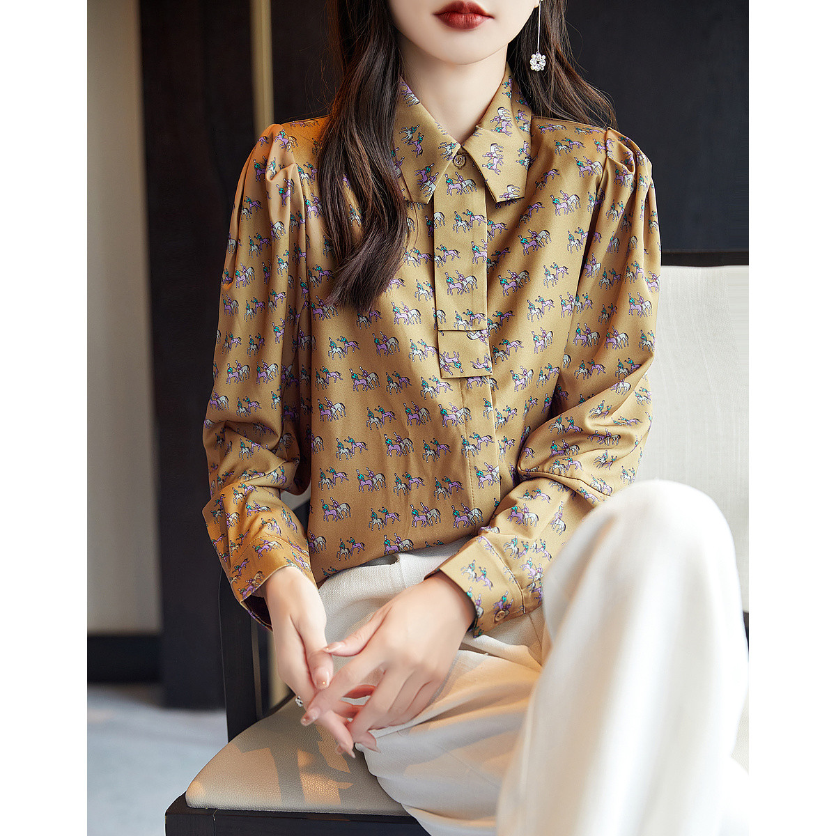 【100%桑蚕丝 纯色百搭】商务通勤长袖真丝衬衫打底衫 206547