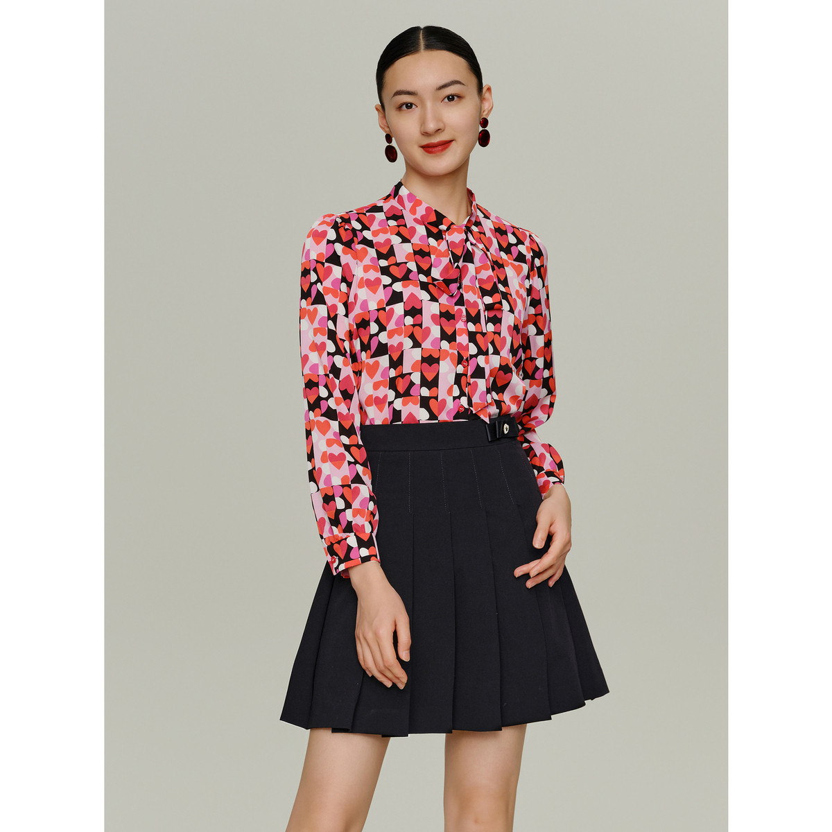 商场同款JZ玖姿爱心印花泡泡袖直筒衬衫女秋季JWDQ60120 382348