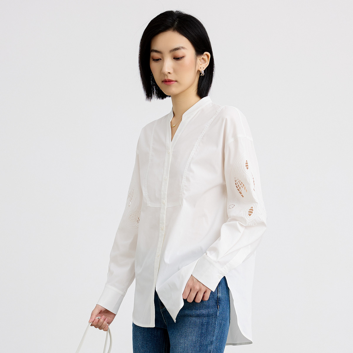 女式衬衫小熊女装简约休闲设计感收腰长袖衬衫清冷白色系穿搭 582657