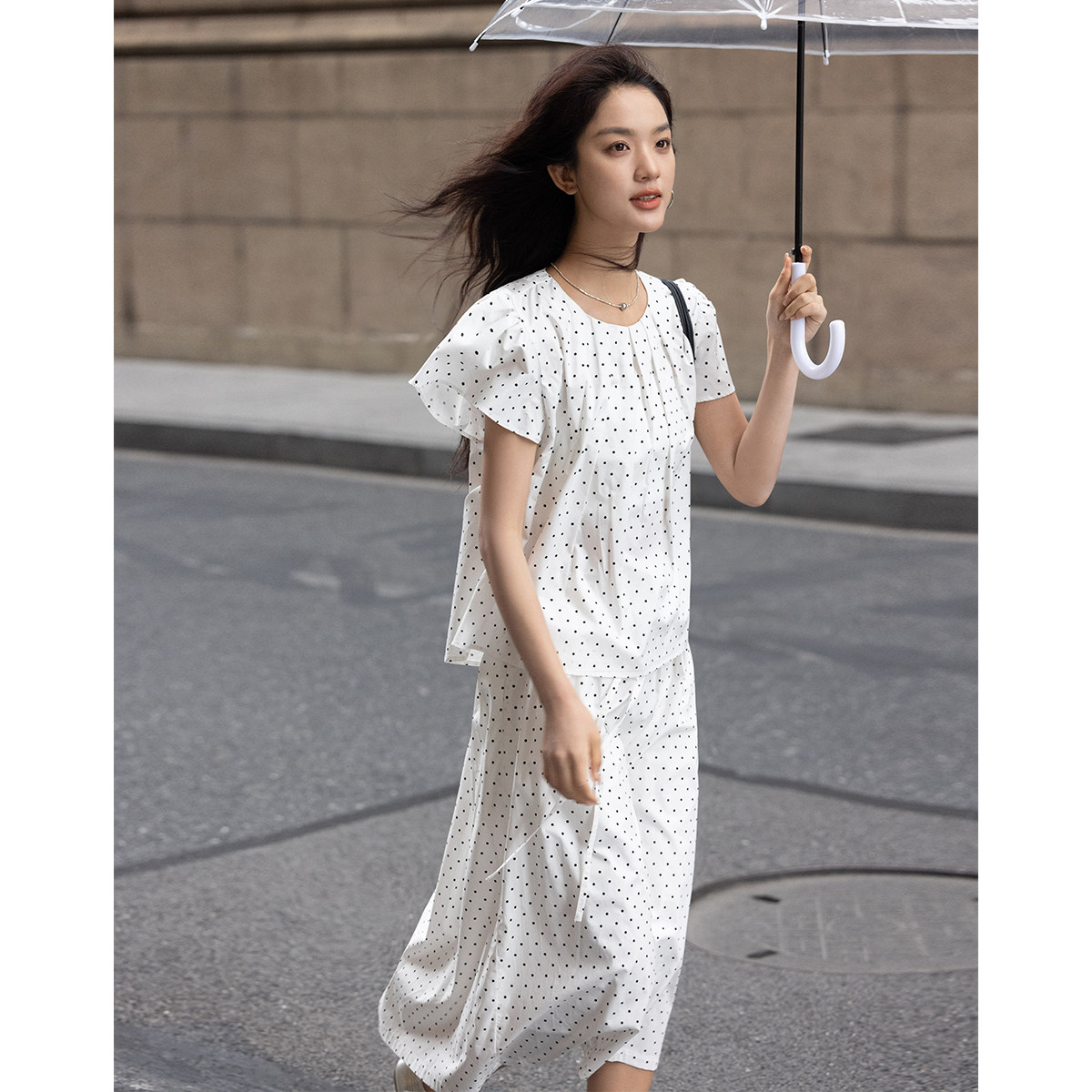 【俏皮小飞袖波点上衣】夏款复古波点清爽感衬衫女 739010
