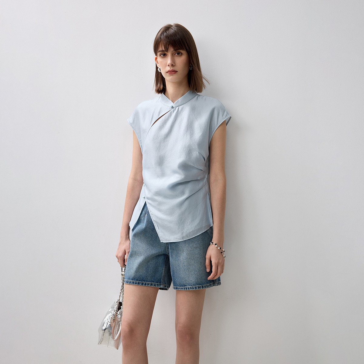 春季国风轻薄衬衫新中式莱赛尔含醋酸透气柔软通勤衬衫女 966427