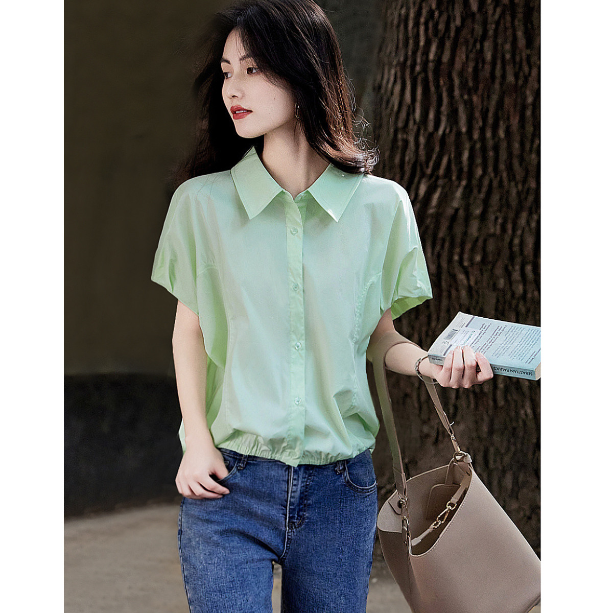 【薄荷曼波】夏轻氧感冰淇淋花苞袖衬衫松紧下摆藏肉衬衣女装上衣 349057