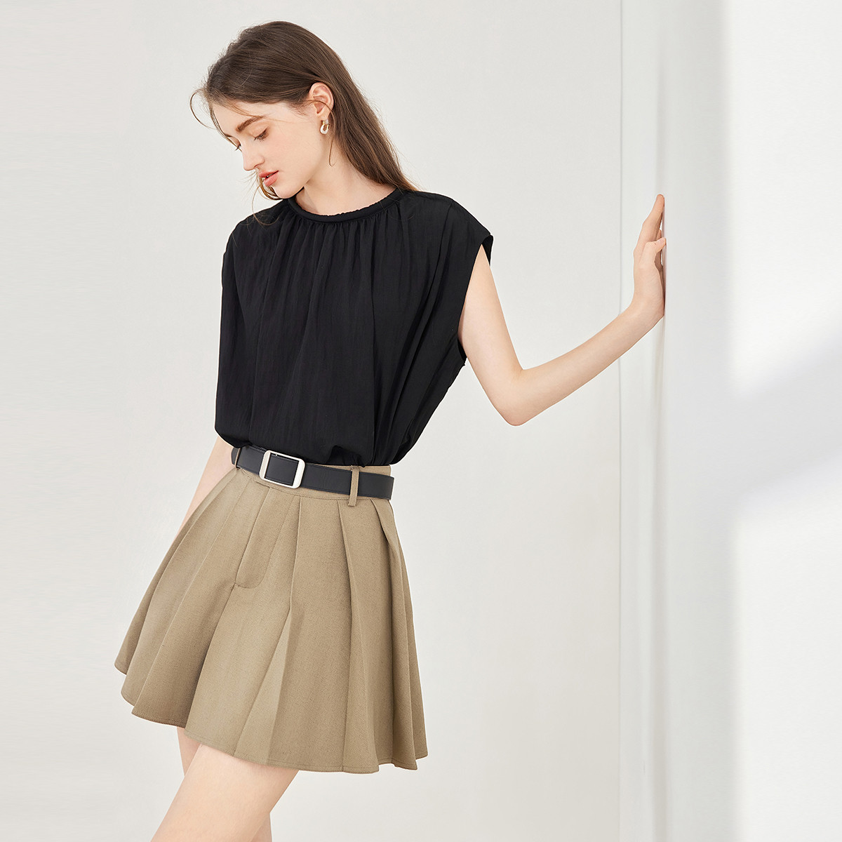 夏季热卖法式气质无袖衬衫宽松版抽绳女轻薄圆领上衣 747348