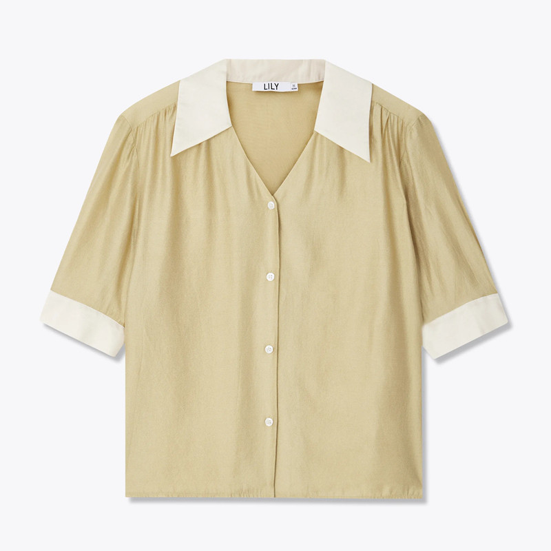 【春季】衬衫女薄荷曼波撞色拼接莫代尔V领轻薄衬衫女 519963