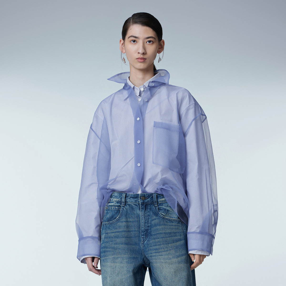 【渐变设计】夏季男友风晕染宽松纯棉长袖衬衫女 993754
