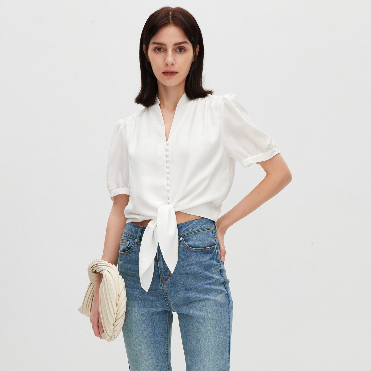 夏款V领中袖通勤气质高级感女式衬衫 517337