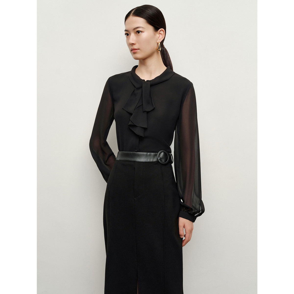 玖姿旗下安娜蔻系列法式优雅都市风荷叶边雪纺长袖衬衫女秋季 646924