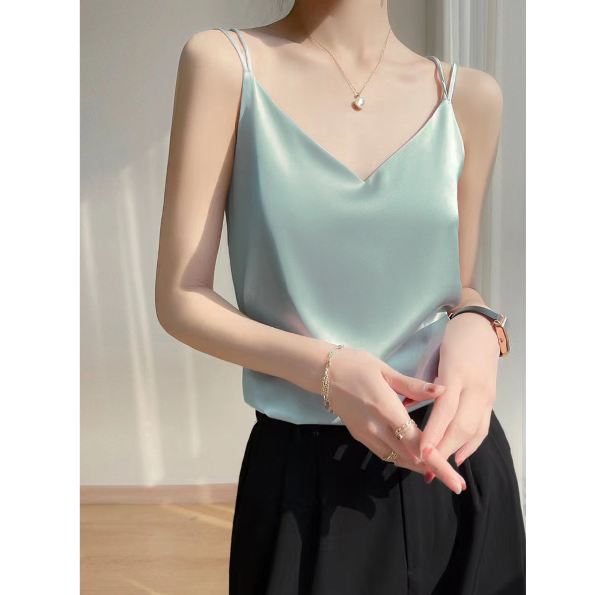 【流光溢彩】夏小性感光泽交叉美背吊带衫女人味V领藏肉女上衣 428545
