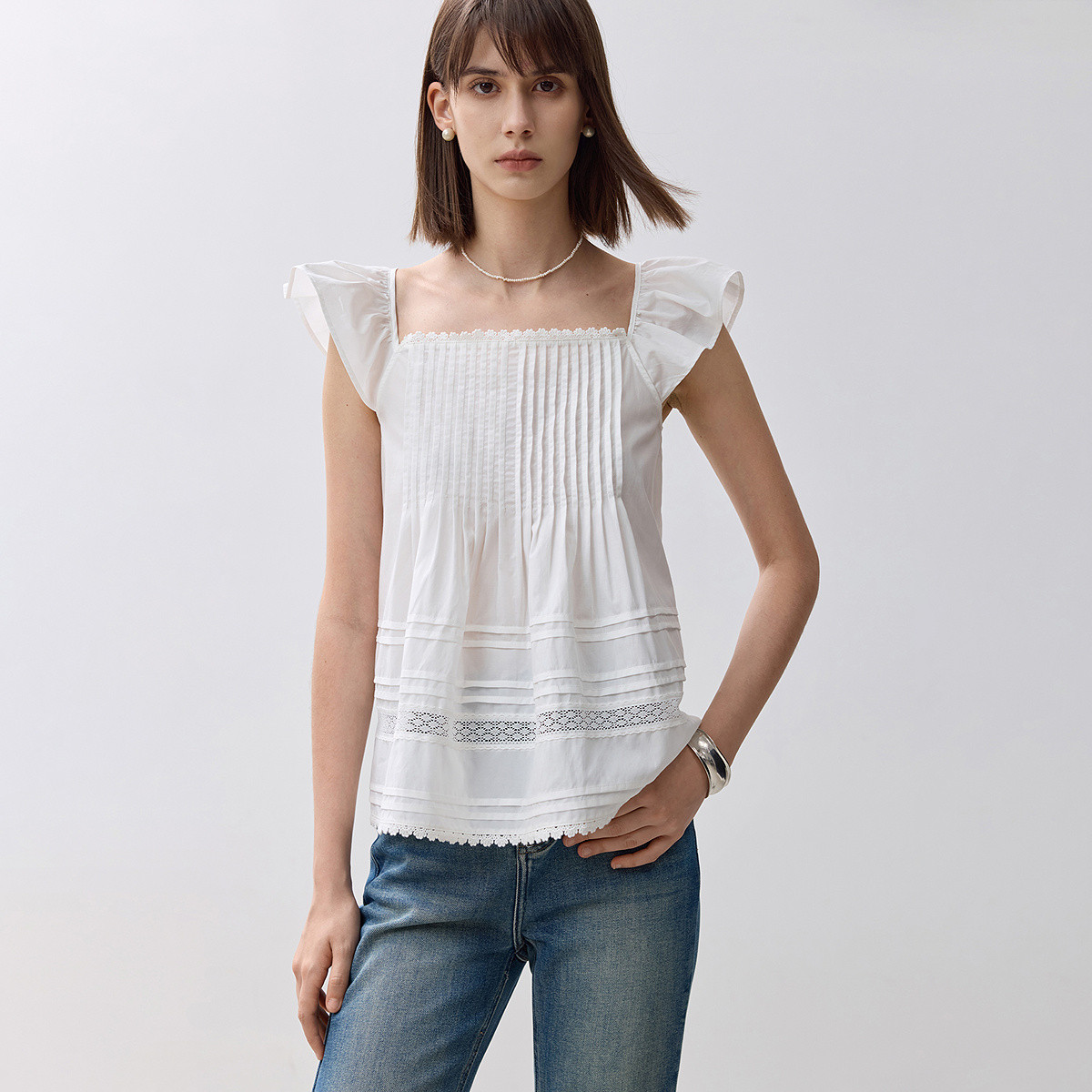 【度假风】春季蕾丝甜美文艺背心女外穿小飞袖上衣雪纺衫女 669979
