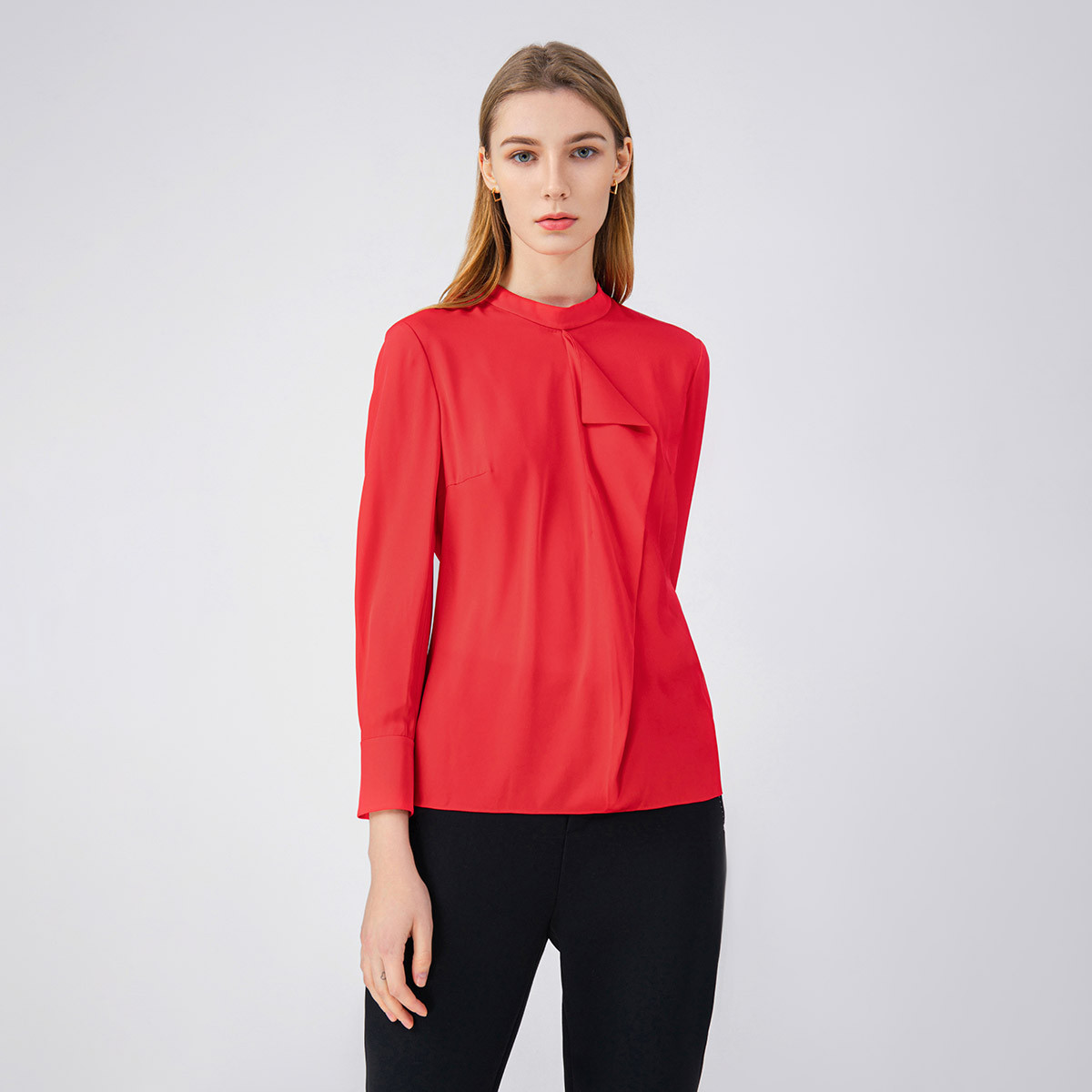 宝姿女装烈焰红飘片日常休闲衬衫长袖上衣 605194
