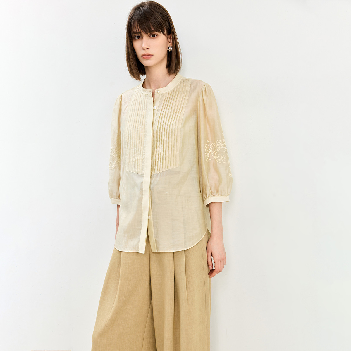 春季新中式国风衬衫女精致立体绣花图案立领设计轻薄衬衫 627931