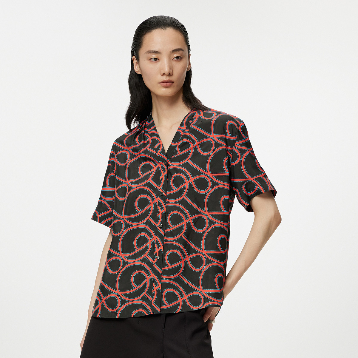 【时尚百搭】夏季百搭可拆卸蝴蝶结满印直筒衬衫女 083546