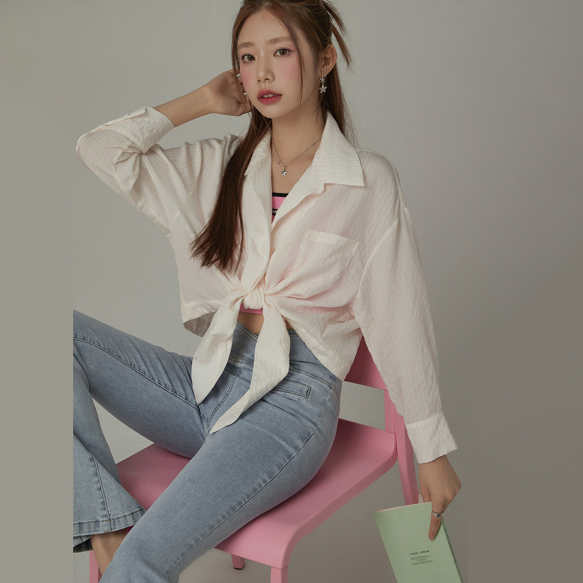 CHUU系带长袖衬衫女士夏小个子宽松短款衬衣上衣 252627