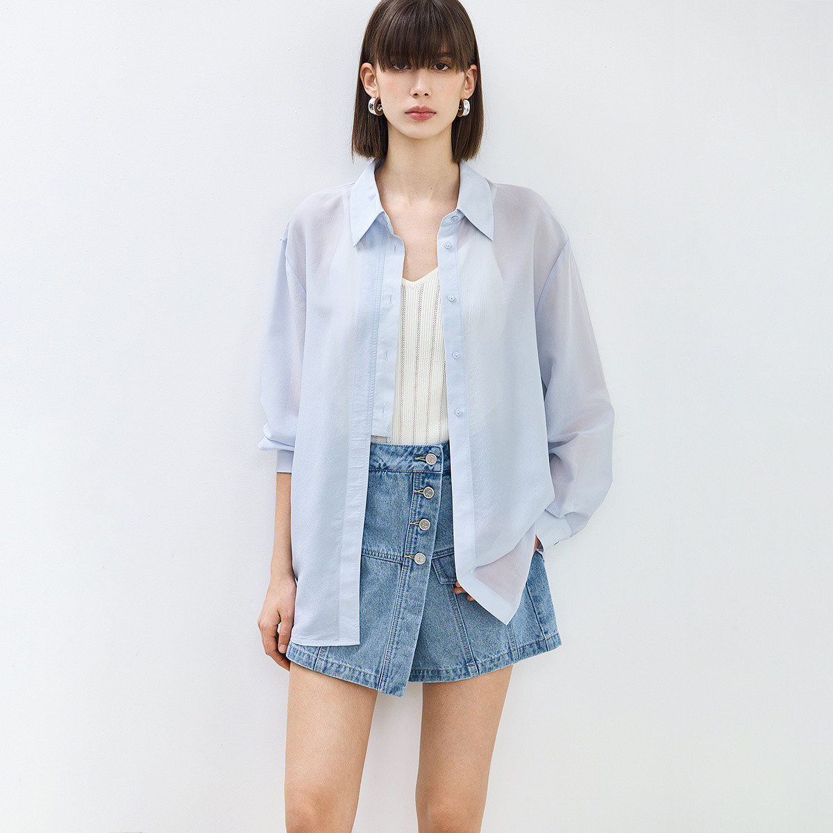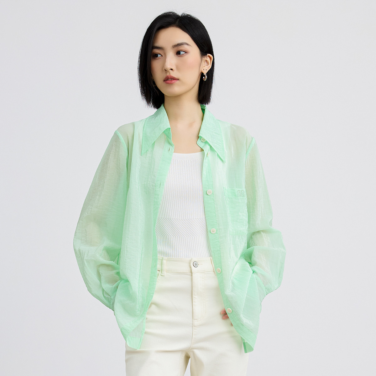 【周冬雨同款】凉皮501Cool女士短款衬衫凉感防晒休闲衬衣 513733