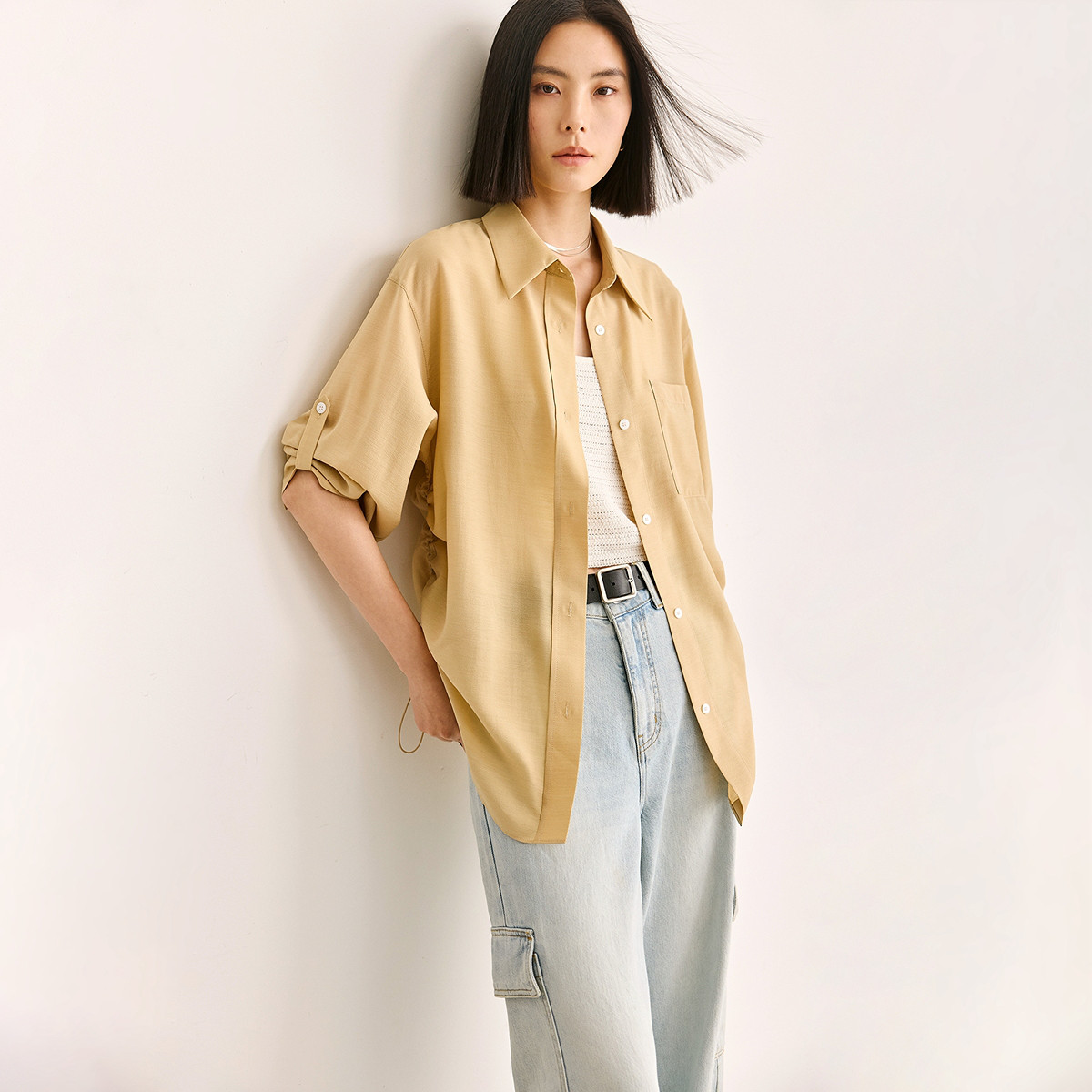 【春季】设计感不对称系带凉爽醋酸通勤款衬衫 115035