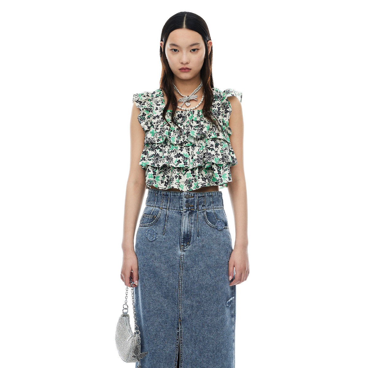 地素小上衣衬衫夏季打褶工艺蛋糕上衣女 926411