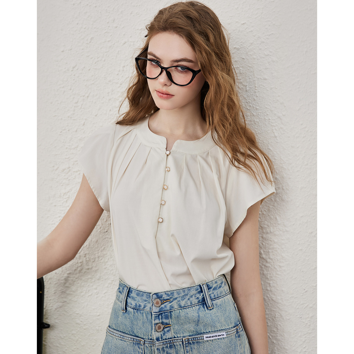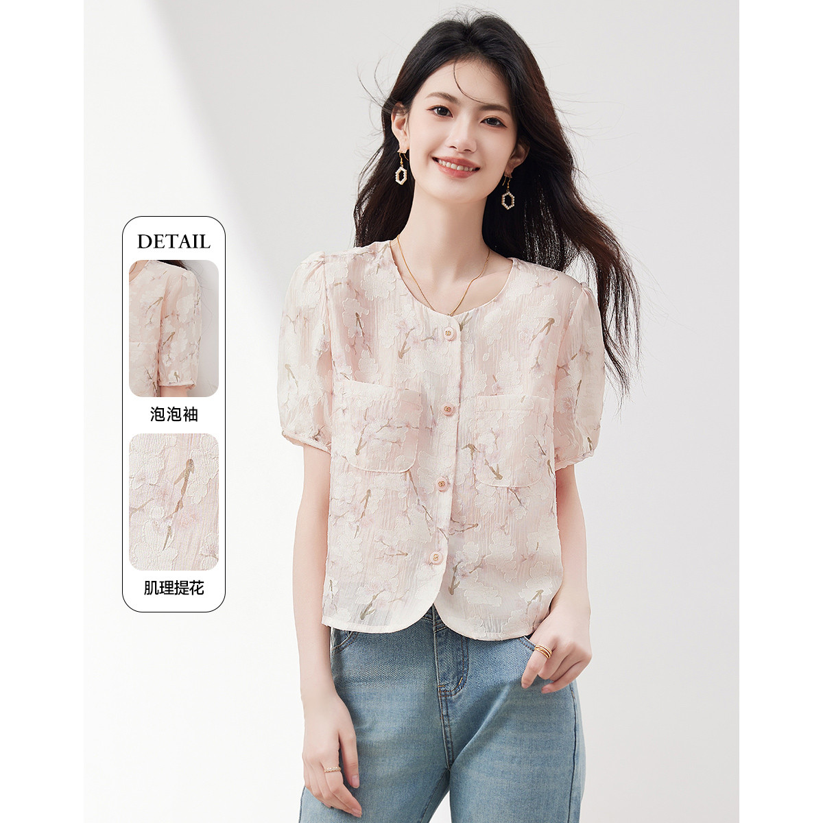 纯棉设计感短袖上衣高级感气质衬衣女士春秋款衬衫 049369