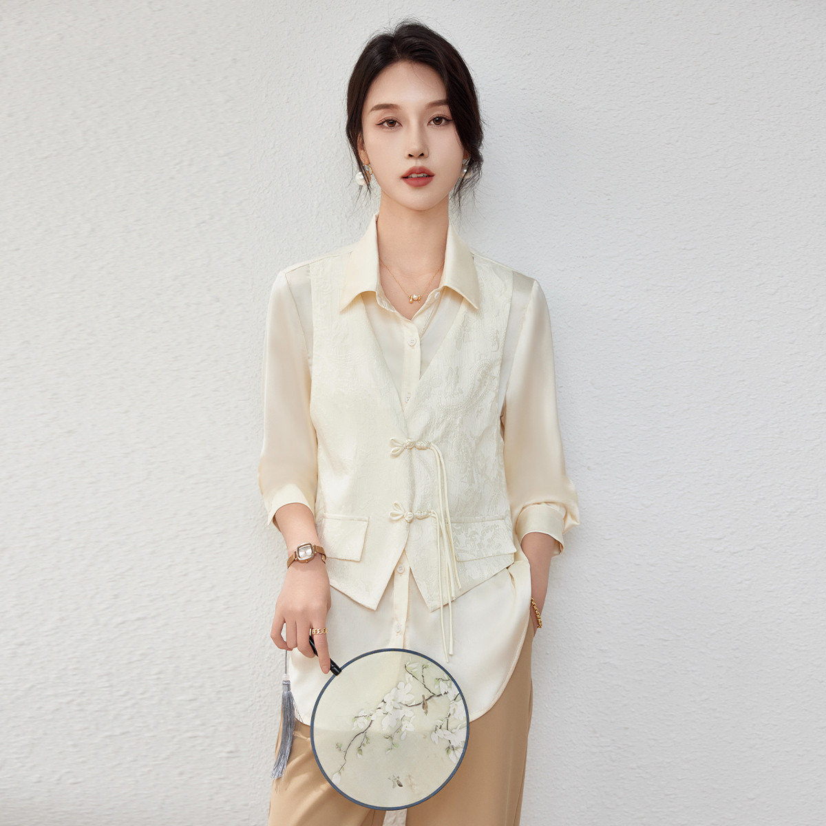【假两件衬衫】春秋新中式盘扣设计感衬衣女气质优雅上衣 069087