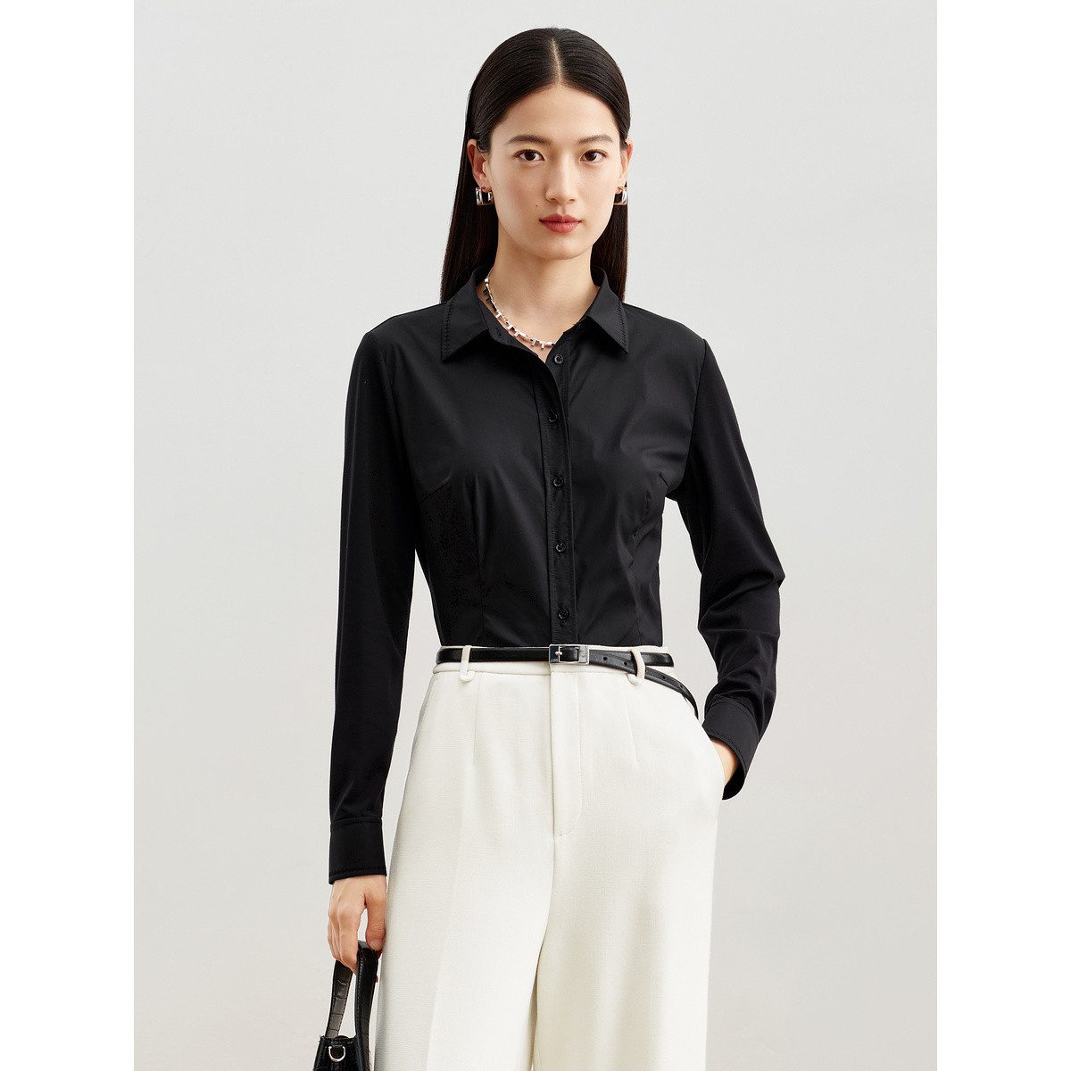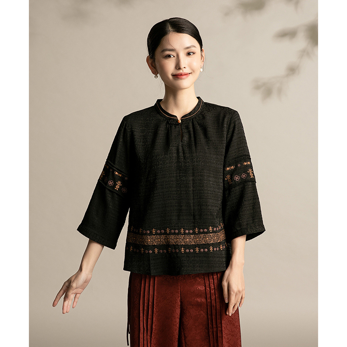 【新中式国风刺绣衬衫】春秋圆领长袖上衣优雅提花衬衣女 439647
