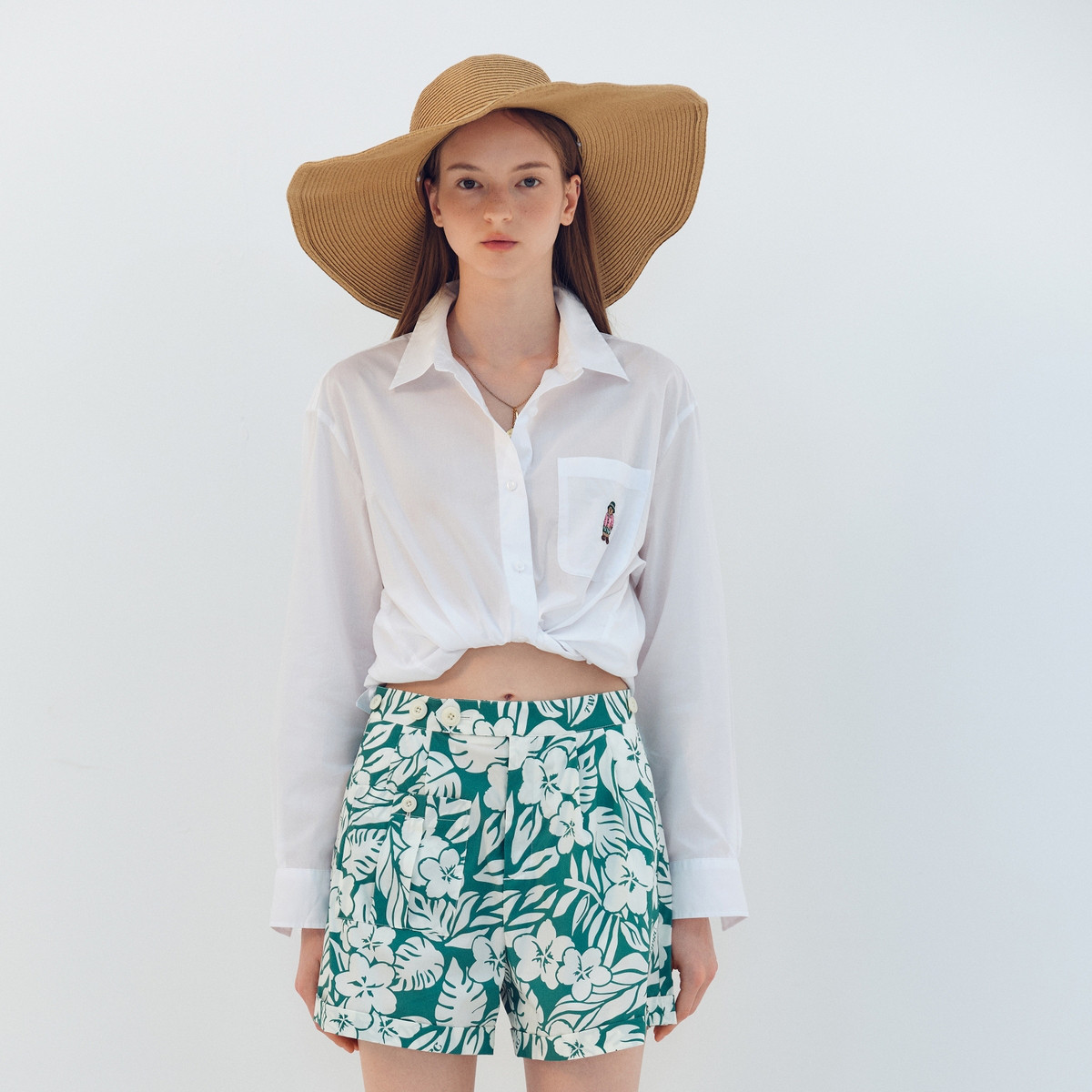 【时尚百搭】夏季百搭可拆卸蝴蝶结满印直筒衬衫女 083546