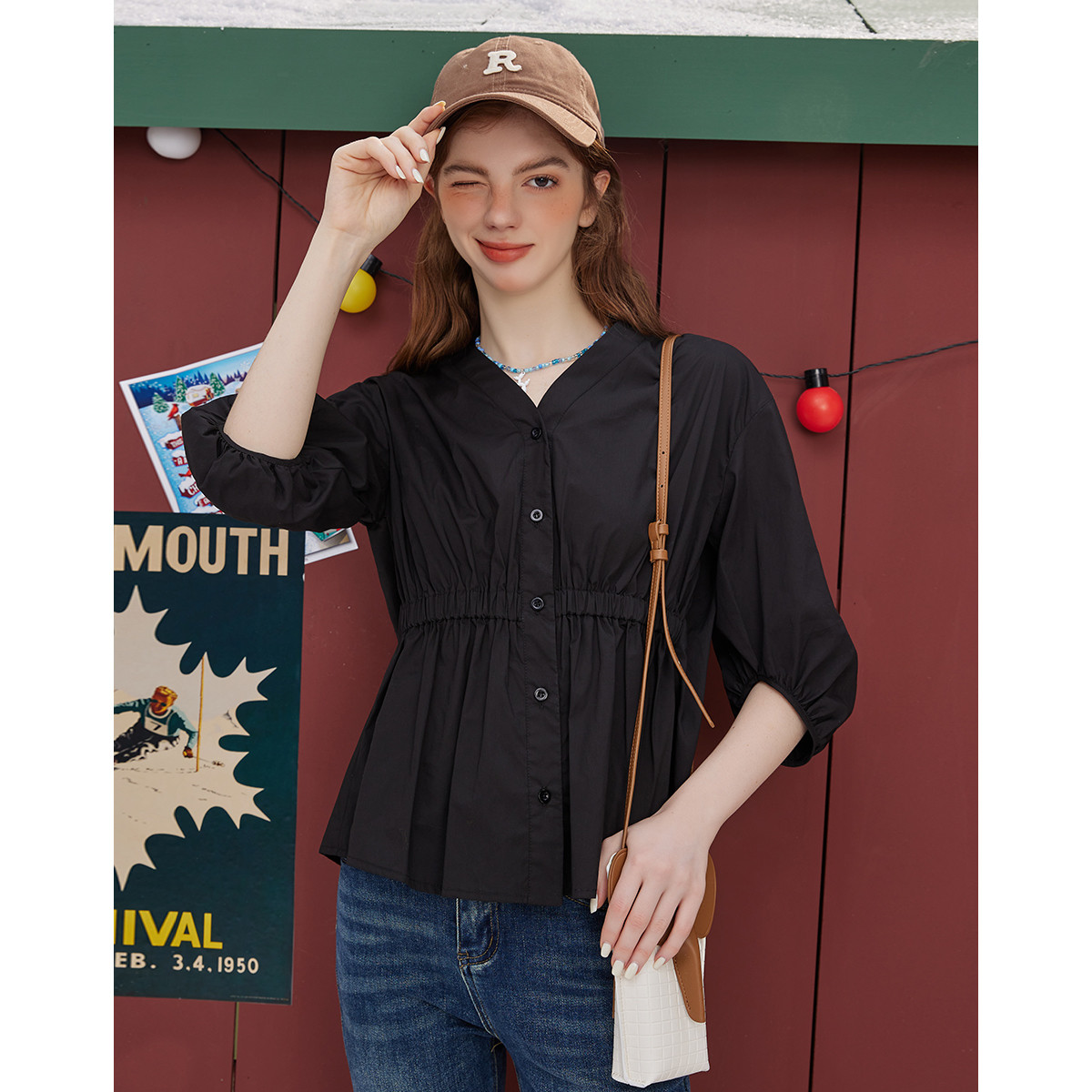 【100%棉】灯笼袖减龄娃娃衫夏季气质收腰女式衬衫 584989