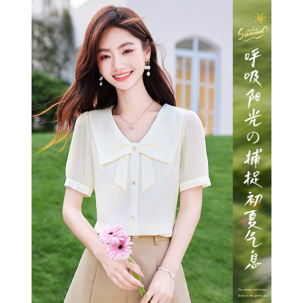 【商场同款】法式通勤女式衬衫短袖T恤女夏季短款上衣 901206